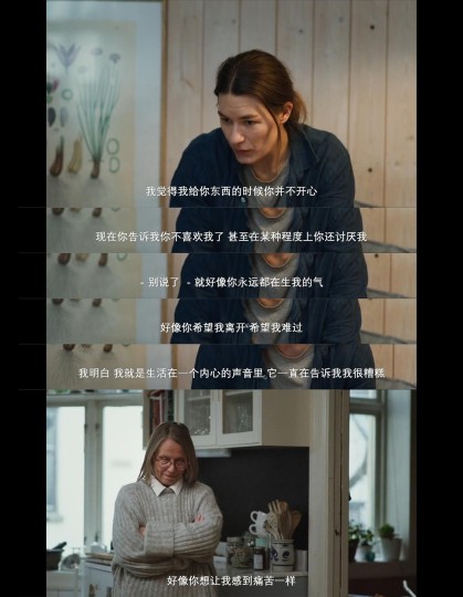 《秋日奏鸣曲》中“女儿的不幸是母亲的胜利吗?我的悲痛是你隐匿的快乐吗?”我看到了千千万万张面孔,我们反复的解剖着母女关系以及各种关系,而家庭之中的伤害更是无形的隐匿的、根深蒂固的、永远的“刺”,刺穿了自我的边界,甚至让我变成我最大的敌人(内在批判者)。我们很容易无形之间复制那一套痛苦的模式,如果从未被健康的爱过,也不会健康的爱别人。 很多叙事单方面的从受害者展示了这份亲情暴力,终究我们不知道为何,而《爱的暂停键》相当于是从“施暴者”角度,也就是玛利亚对爱人的情绪施暴,让我们更好的的解剖了,更深层次的追究了这种行心理因素。片中也通过一段母女对话中反映出来了家庭内部的影响,没有停留在展现这种暴力症状的表层面,而是深层次的剖析情感的病原体。